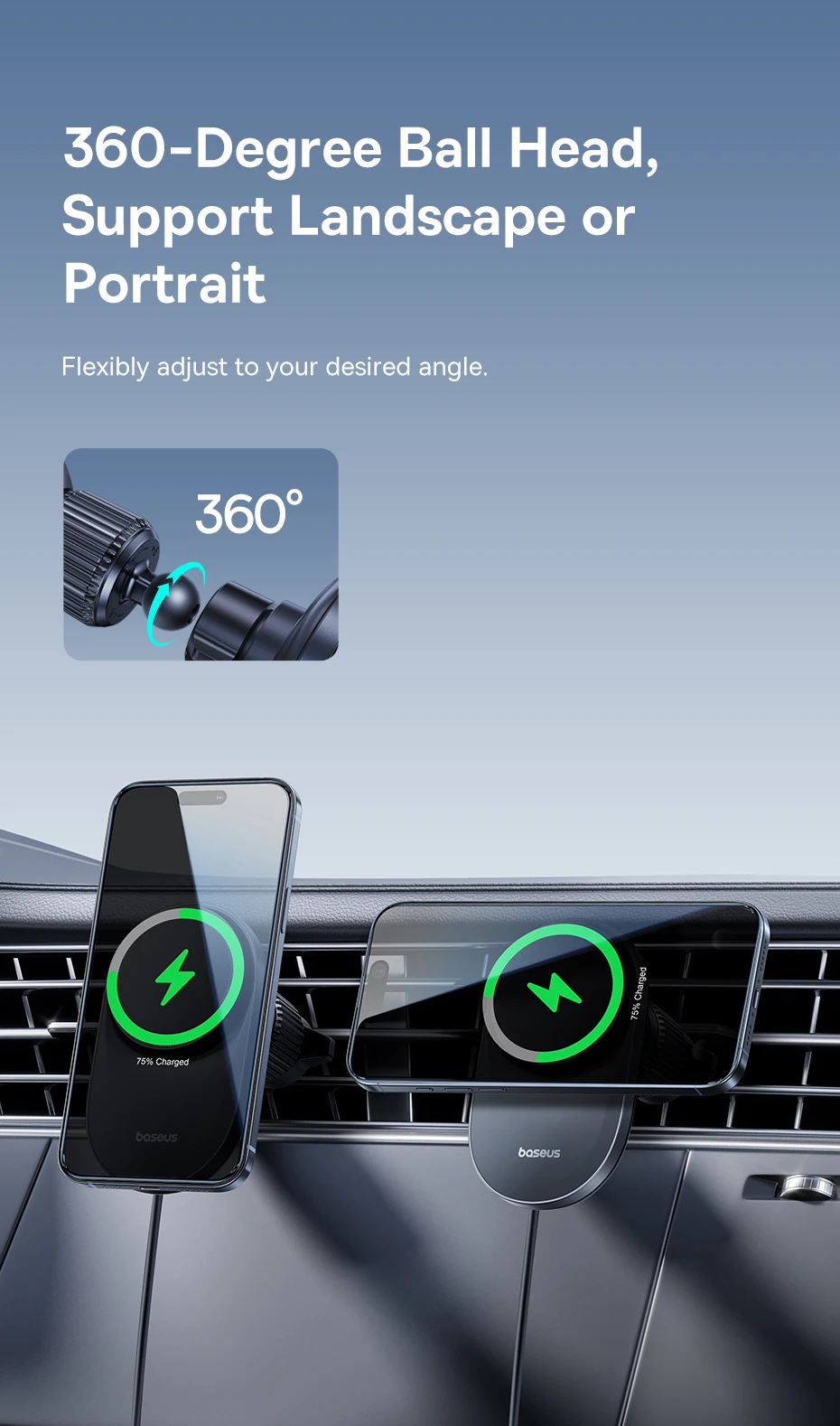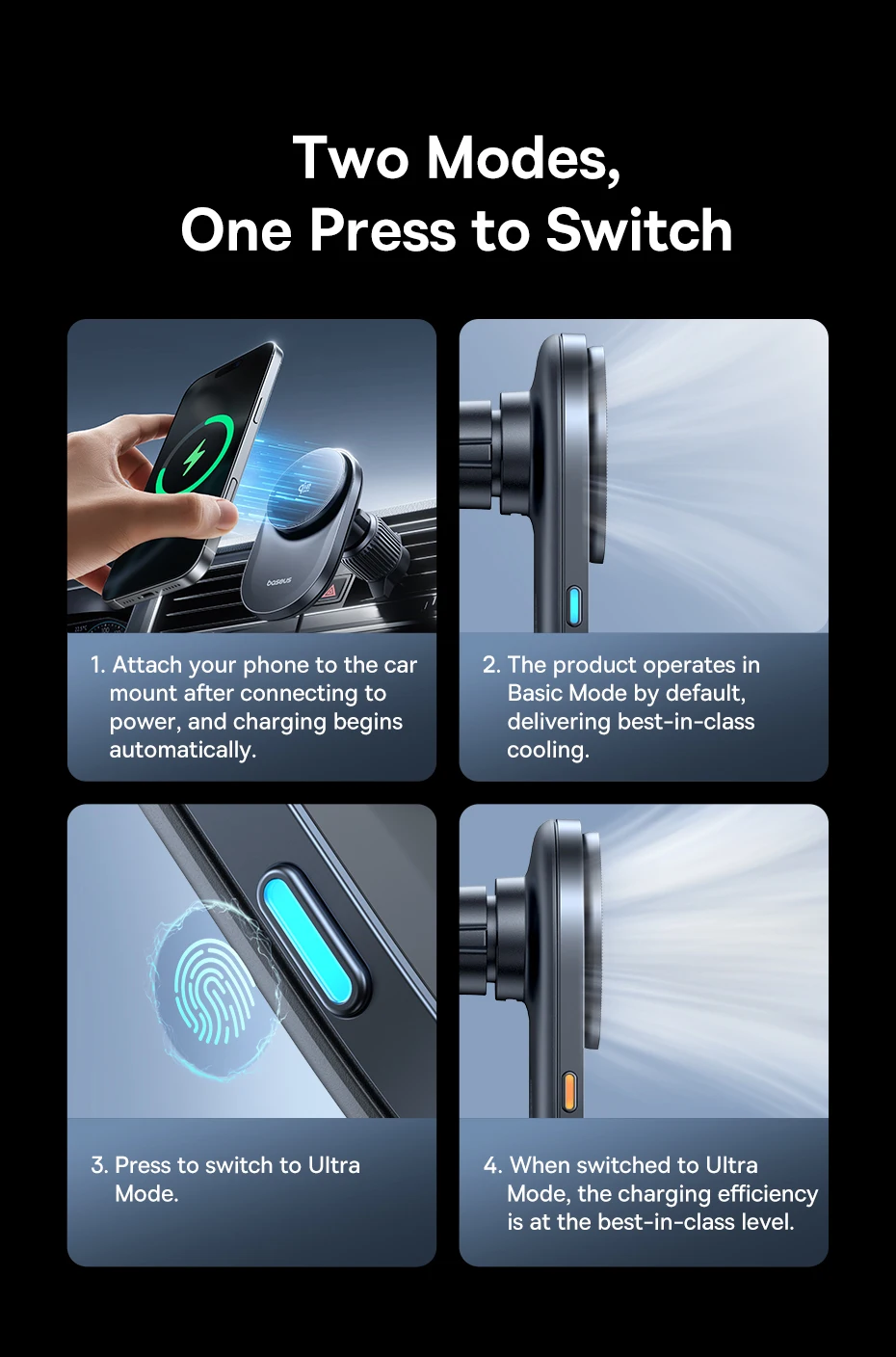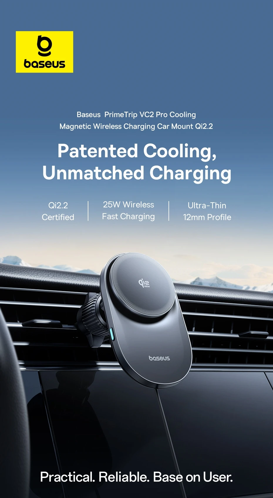 "Baseus Car Magnetic Wireless Charger 25W Fast Charging for iPhone 17/16 Pro Max & Samsung | Qi2.2 Wireless Car Phone Holder with Cooling Fan"